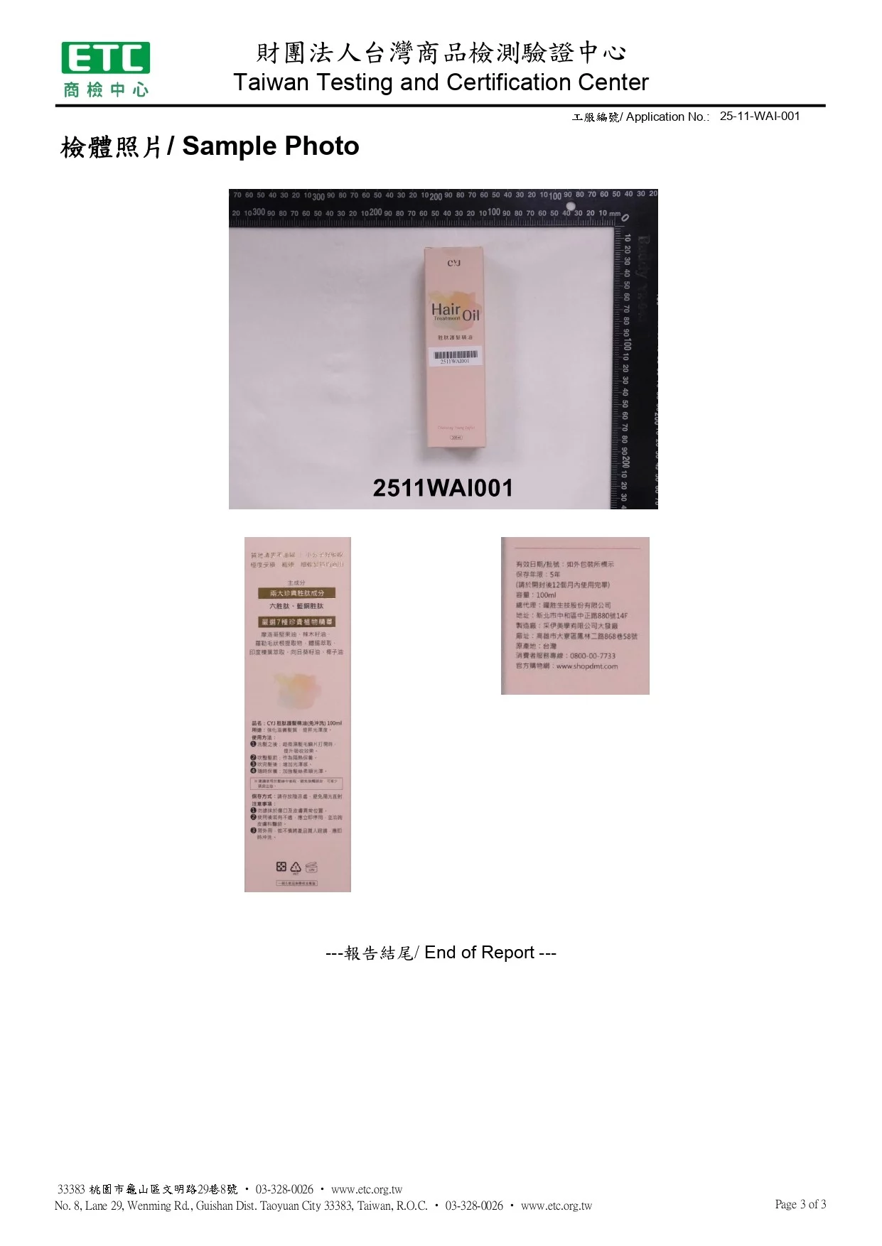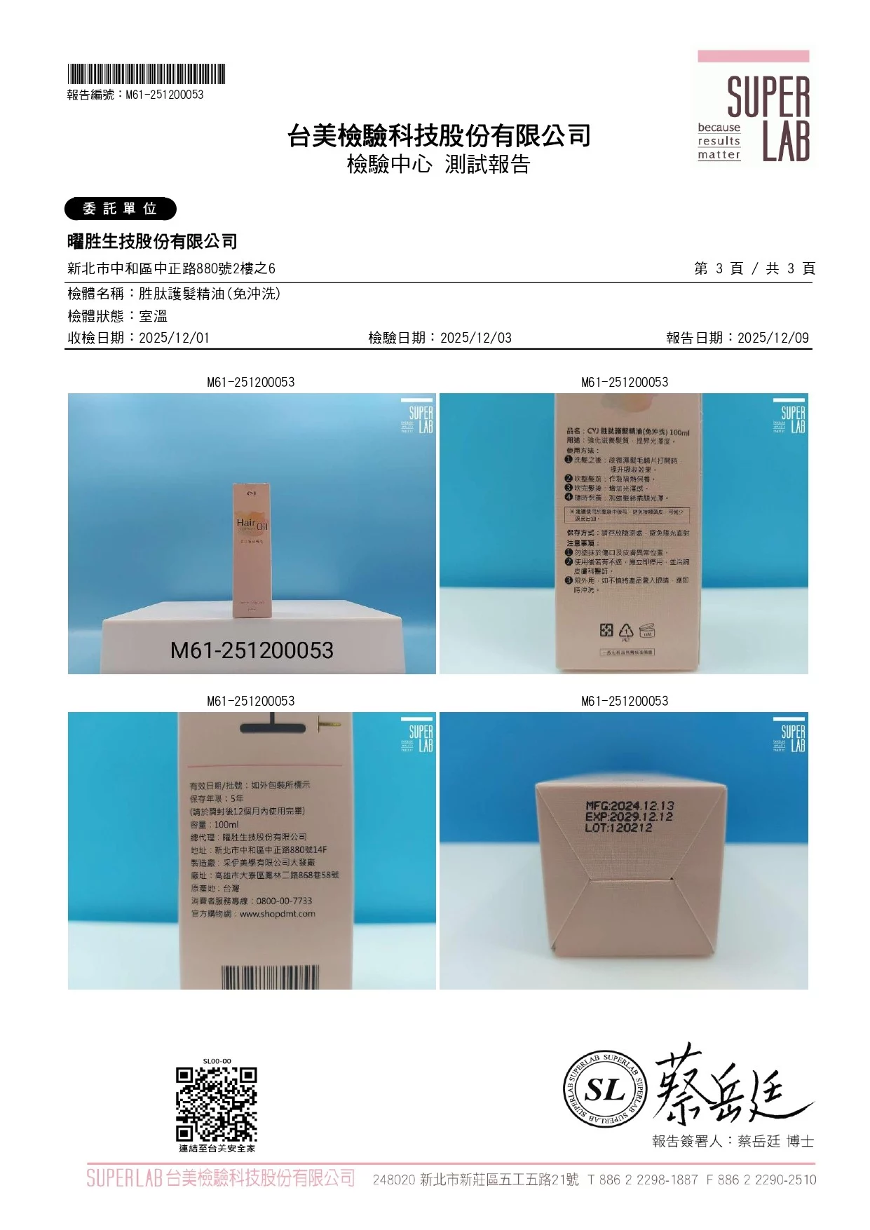 DRCYJ 針對您曾購買、兌換或選配之 「CYJ 胜肽護髮精油」,提供以下產品安全資訊說明,期盼您能直接從我們獲得最正確、最完整的訊息。
