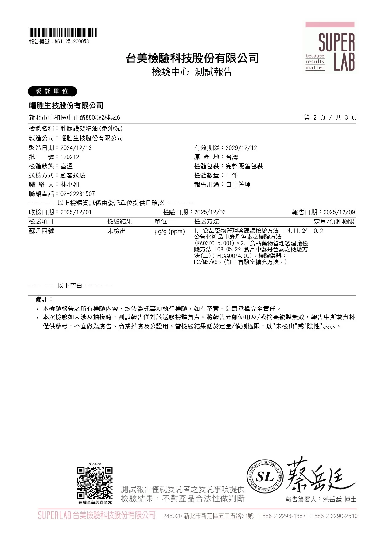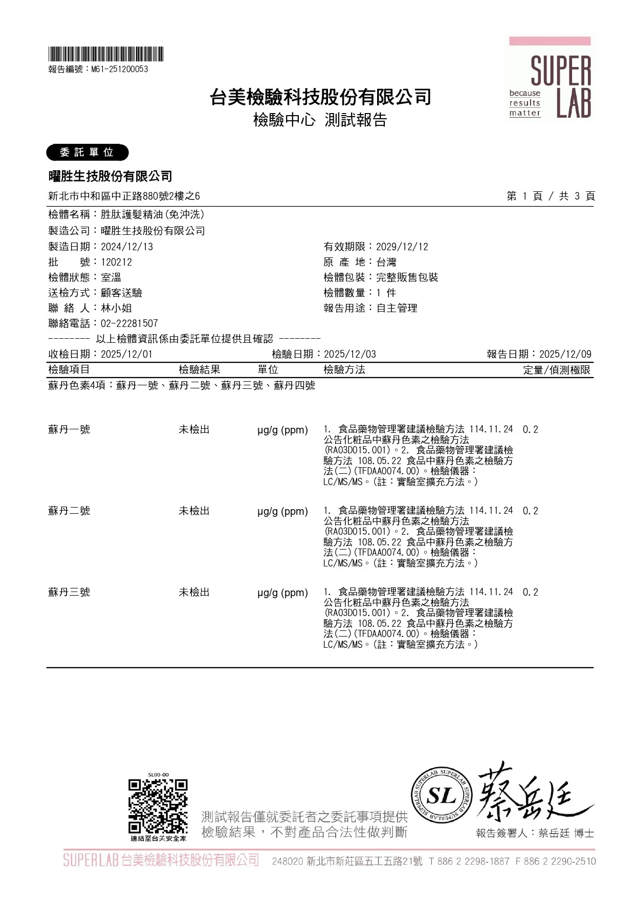 近期市面上發生 「蘇丹紅」相關妝品與原料事件。本公司已第一時間將相關批次產品自主送驗,檢測結果均為未檢出。